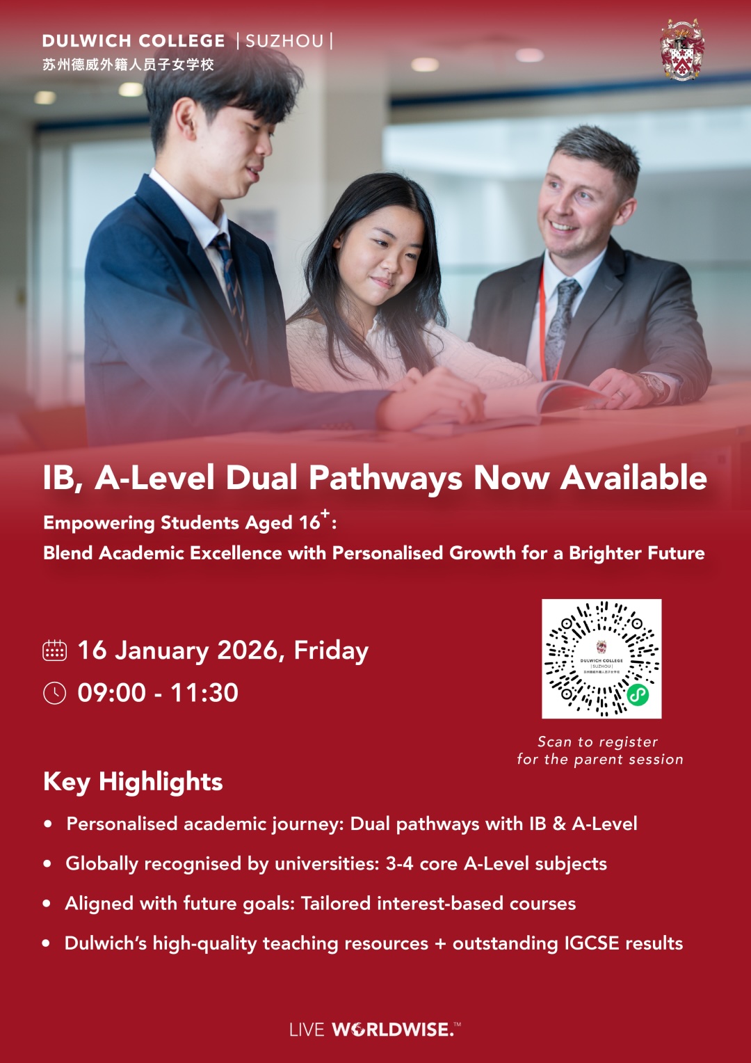 Join us at Dulwich College Beijing to explore a legacy of academic rigour and a culture of outstanding university preparation. Learn how our specialised IB Diploma programme and A-level paves the way to the world's most competitive universities and see the environment where this success is built.