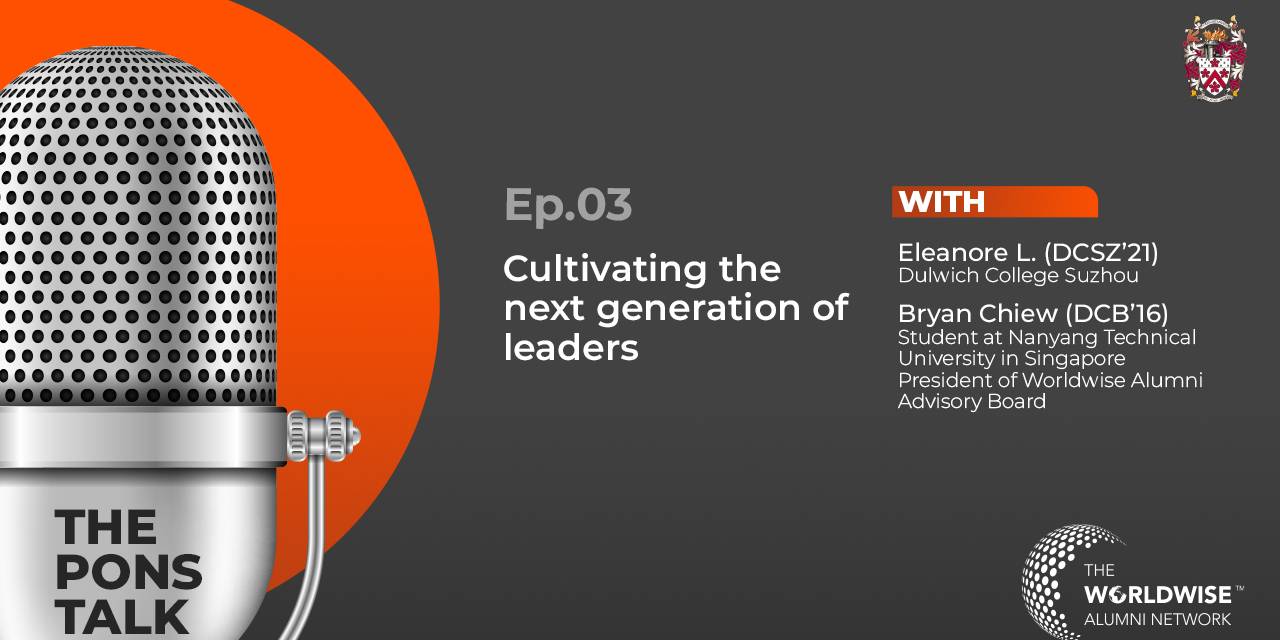 在第三期《The Pons Talk》中,北京德威的杰出校友Bryan接受了来自苏州德威国际高中13年级学生Eleanore L的采访。Bryan分享了在德威的时光对他的启蒙, 如何培养塑造他的领袖潜质和领导力,以及他为何热衷于支持学弟学妹,鼓励他们对为推动世界发生积极的改变贡献力量。《The Pons Talk》是德威最新的播客系列节目,由在校学生采访来自我们Worldwise Alumni全球校友网络平台的杰出校友。